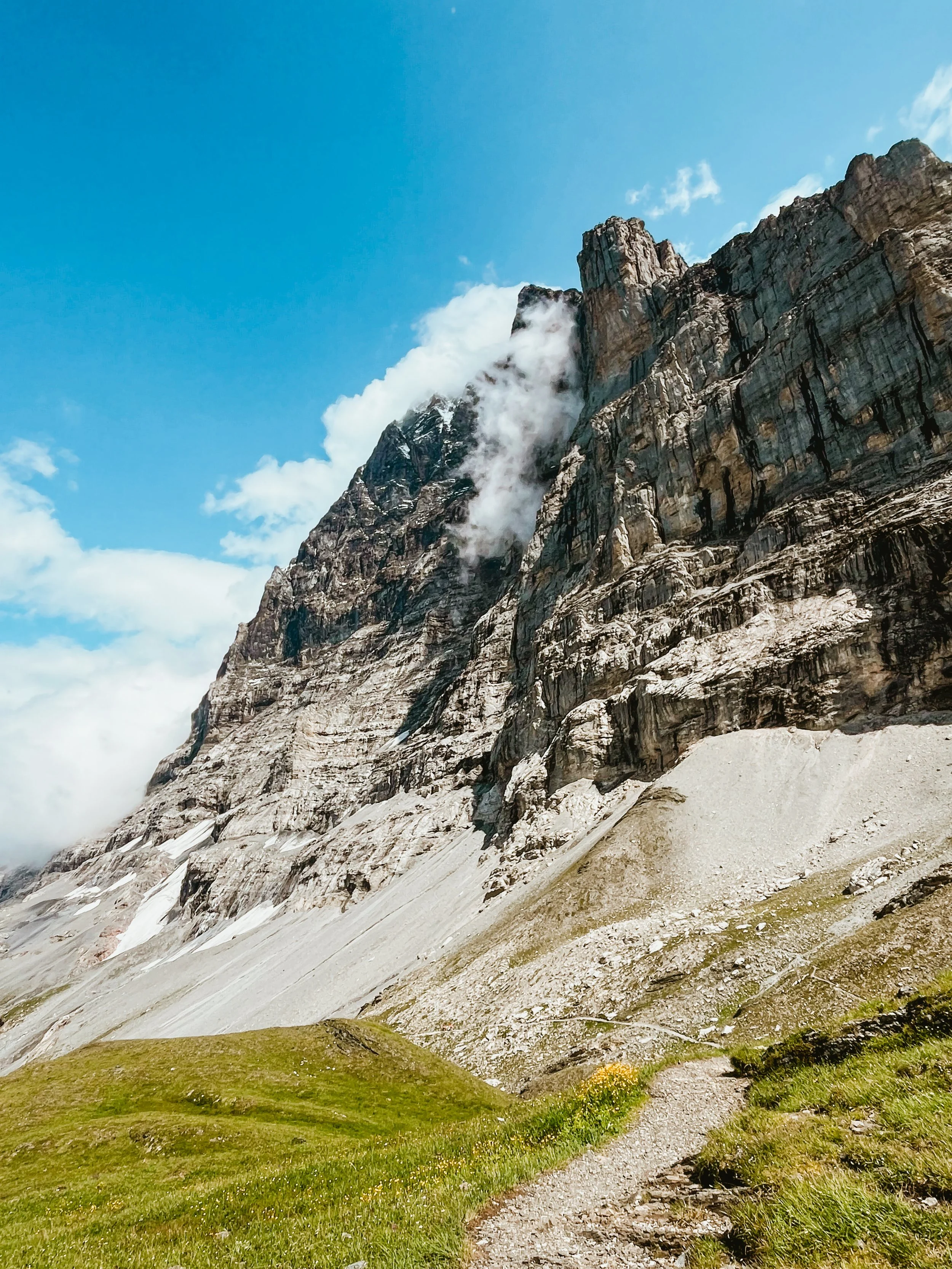 A stunning trail hugging the base of the legendary Eiger North Face, full of drama, wildflowers, and glacial energy